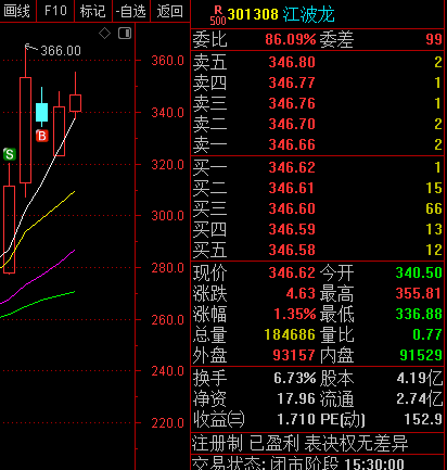 今日对江波龙的操作比较精准:周一以343.55元加仓后,未能找到合适的做T时机;