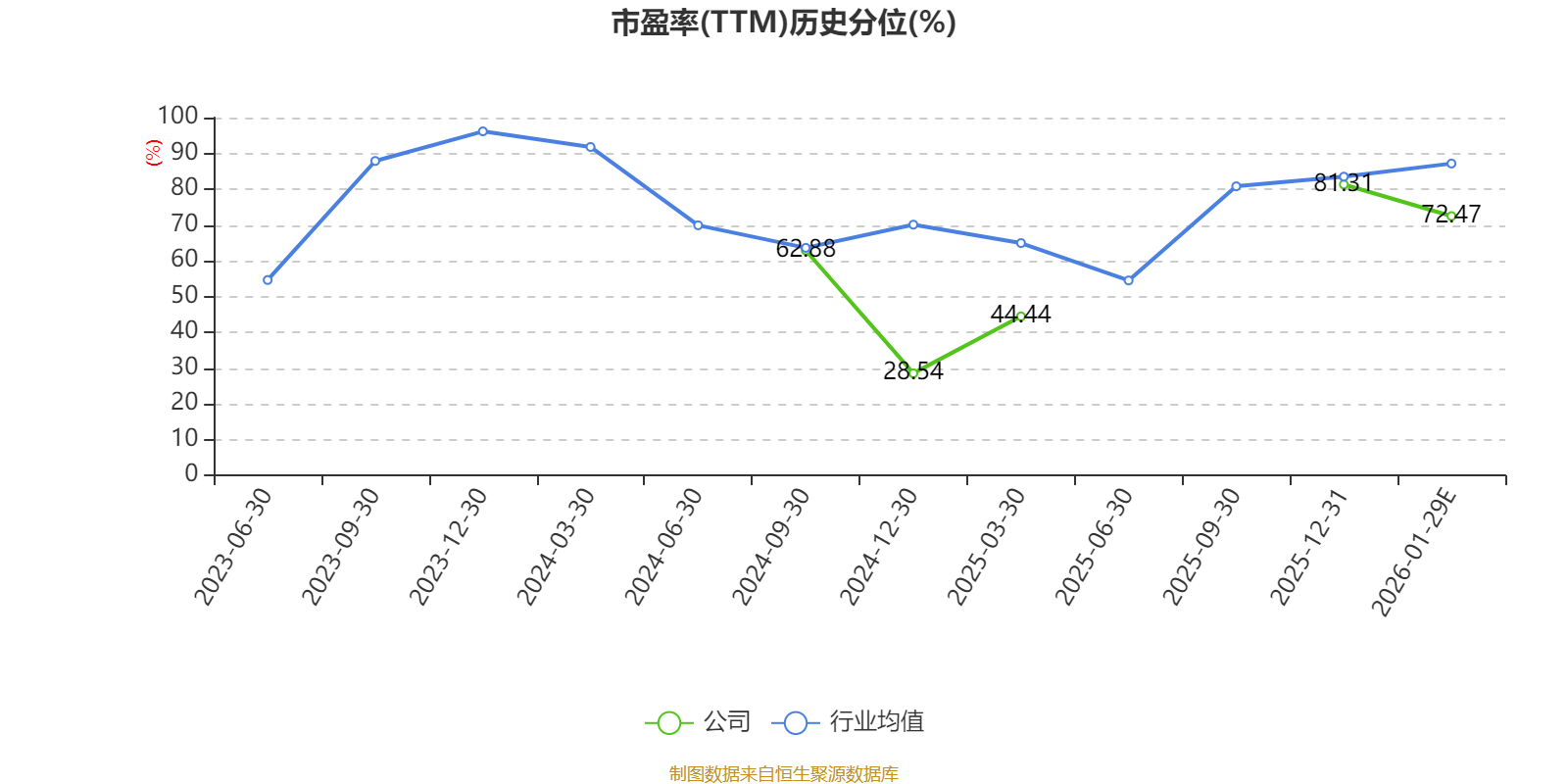 市盈率、市净率为负时,不显示当期分位数,会导致折线图中断。