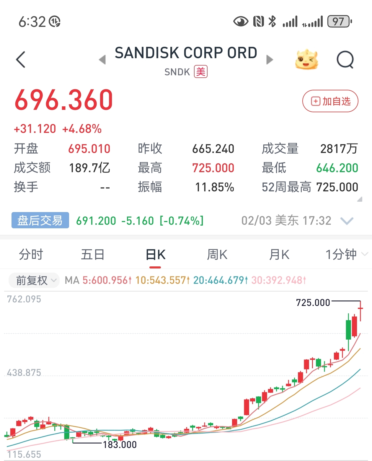 闪迪昨晚继续大涨