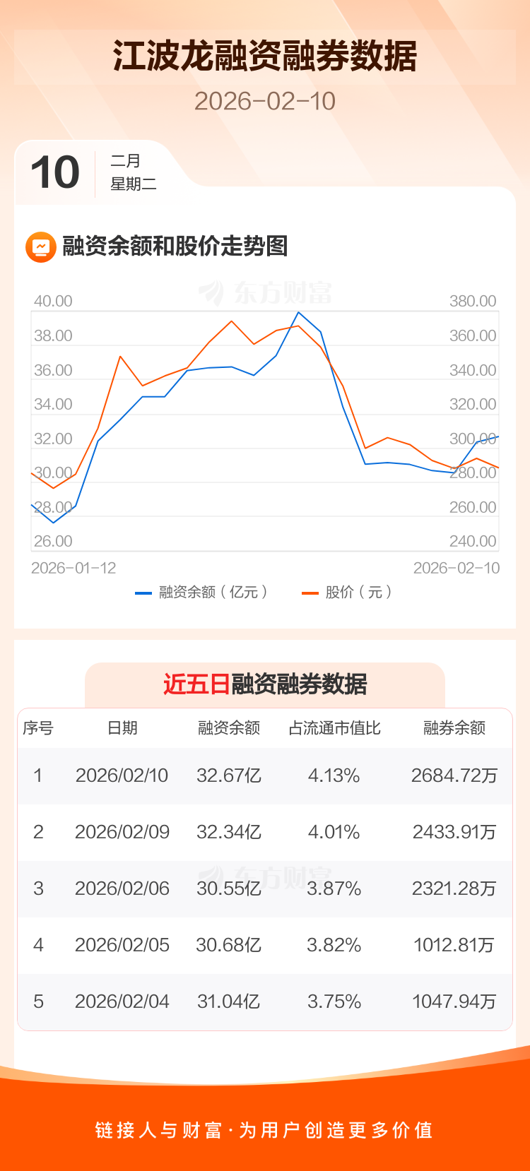 交易所最新数据显示,江波龙于2026年2月10日获融资买入2.72亿元,融资偿还2.39亿元,当日融资净买入3296.13万元。目前,该股融资余额32.67亿,占流通市值比例为4.13%。