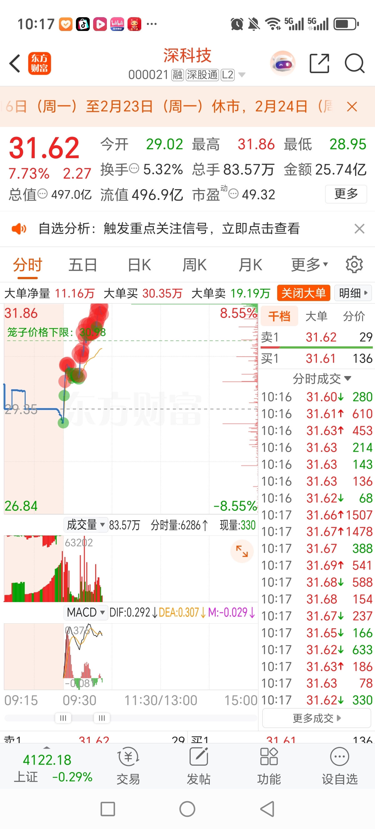 深科技要涨停嘞啊,你咋跟个驴是的,不走倒退。一着急把深科技落下嘞。选的你。你是真