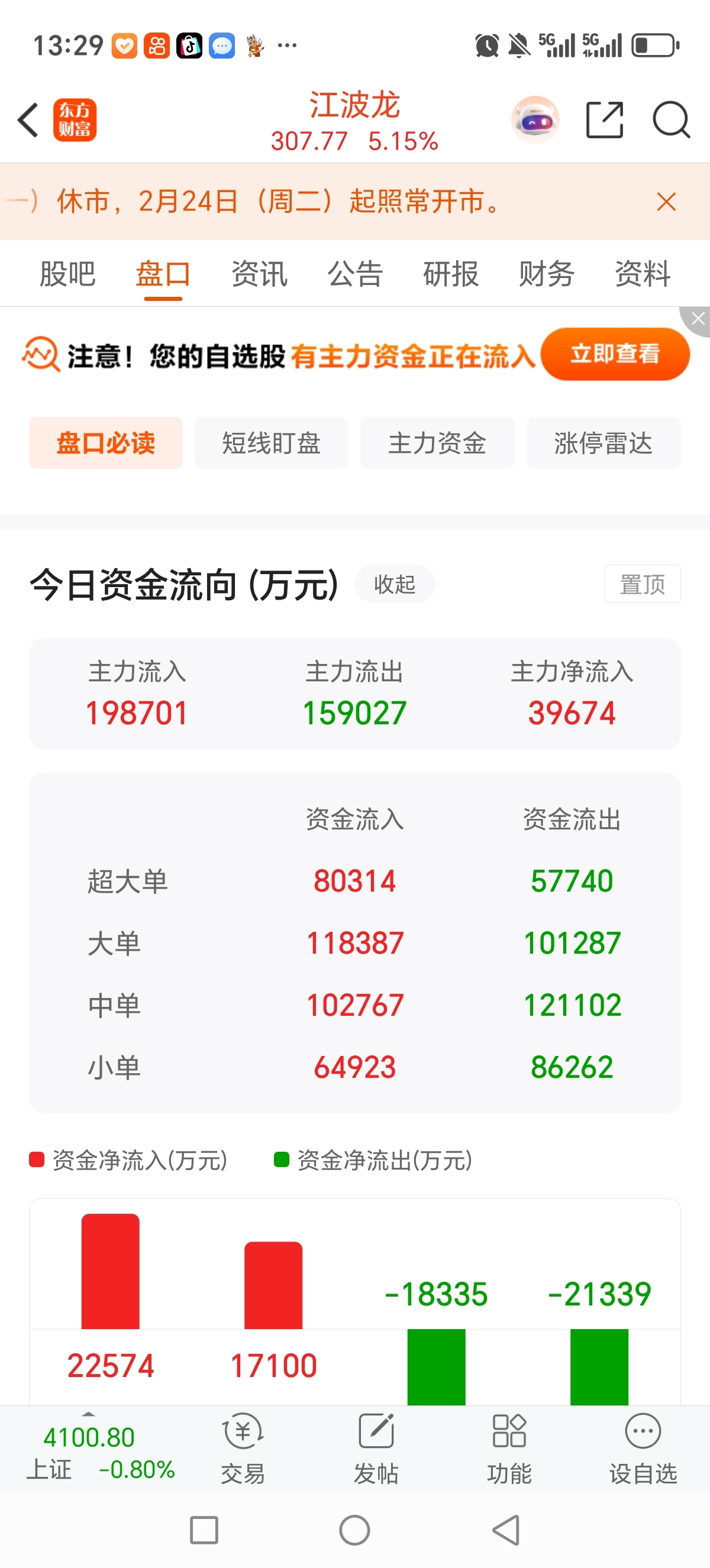 自己体会,人家流进来4个亿,连续半个月流出了,这是啥意思自己体会,