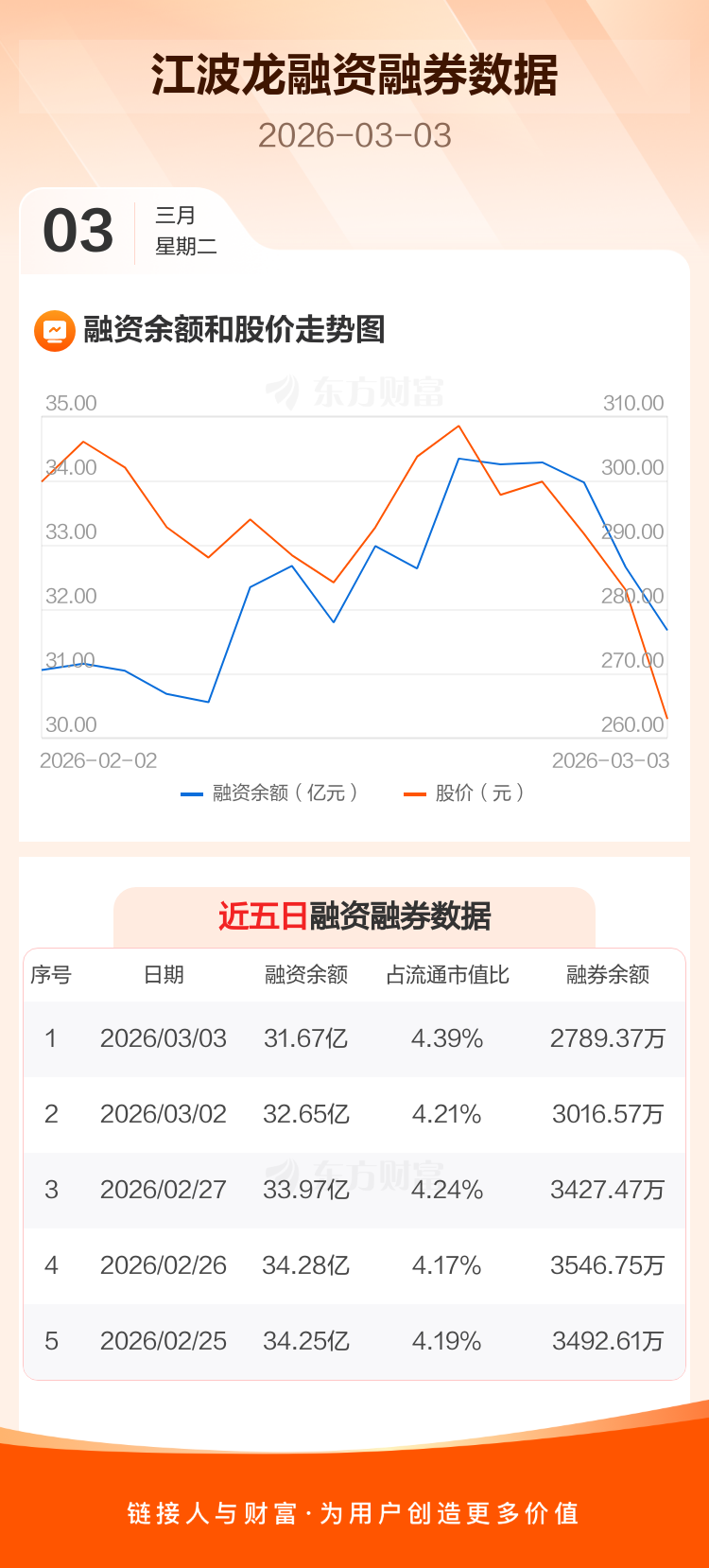 交易所最新数据显示,江波龙于2026年3月3日获融资买入3.78亿元,融资偿还4.77亿元,当日融资净偿还9819.83万元。目前,该股融资余额31.67亿,占流通市值比例为4.39%。