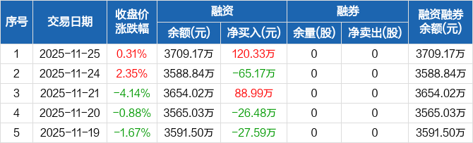 万得凯:融资净买入120.33万元,融资余额3709.17万元(11-25)