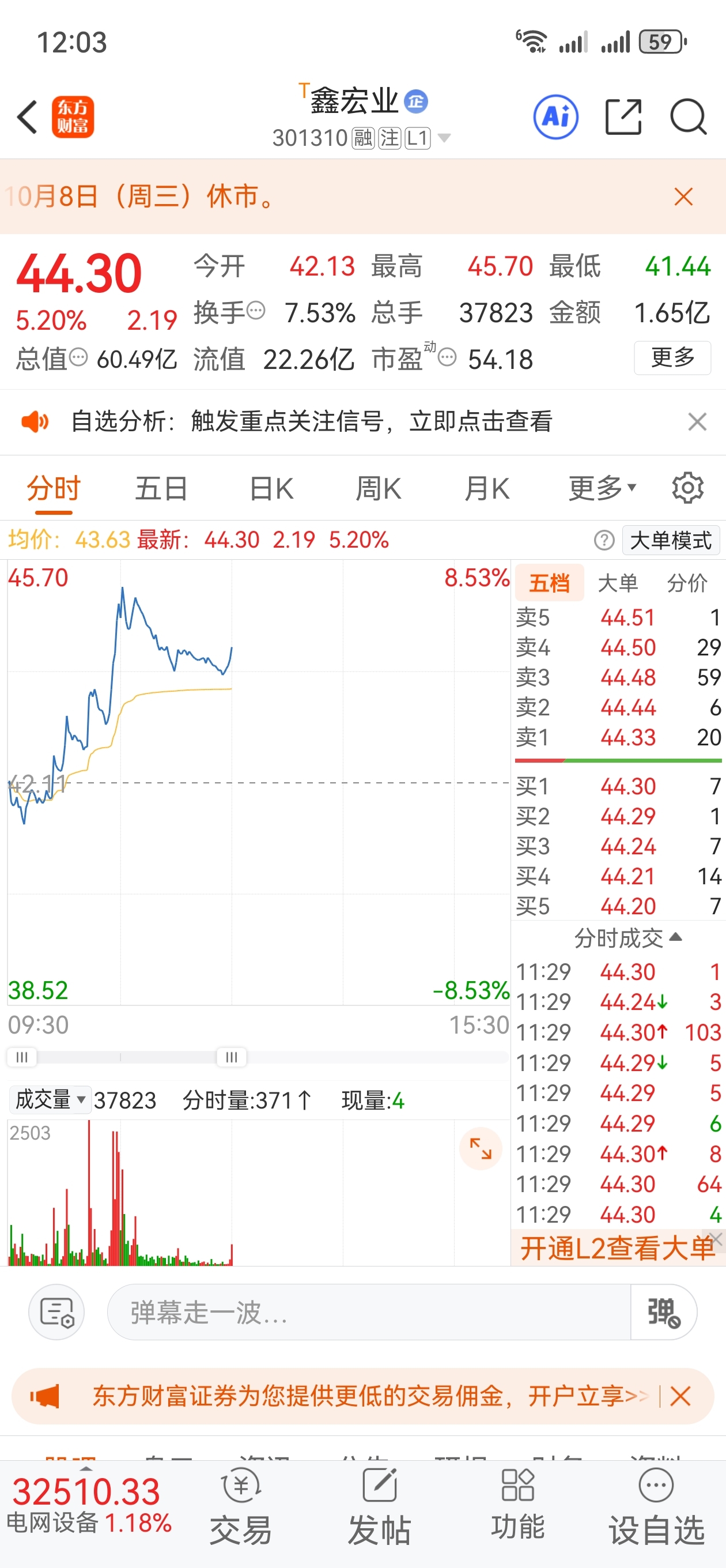 $鑫宏业(SZ301310)$ 有人欢喜有人愁。