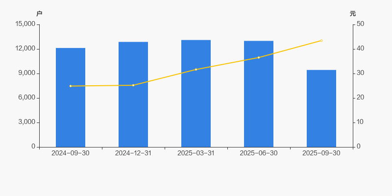 2024年9月30日至今,公司股东户数显著下降,区间跌幅为22.20%。2024年9月30日至2025年9月30日区间股价上涨74.60%。