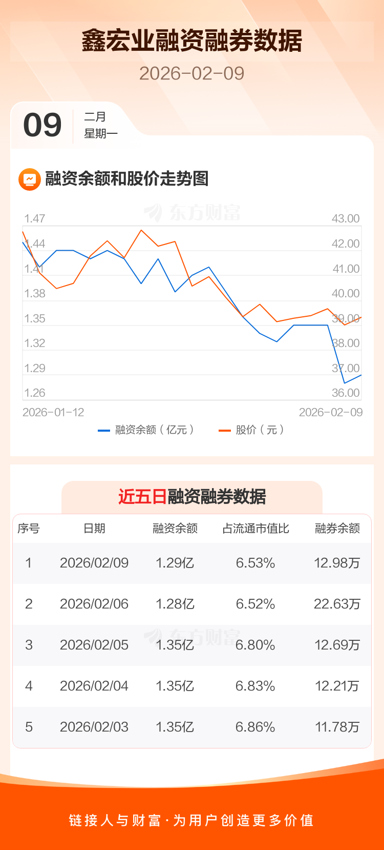 交易所最新数据显示,鑫宏业于2026年2月9日获融资买入634.66万元,融资偿还500.88万元,当日融资净买入133.79万元。目前,该股融资余额1.29亿,占流通市值比例为6.53%。