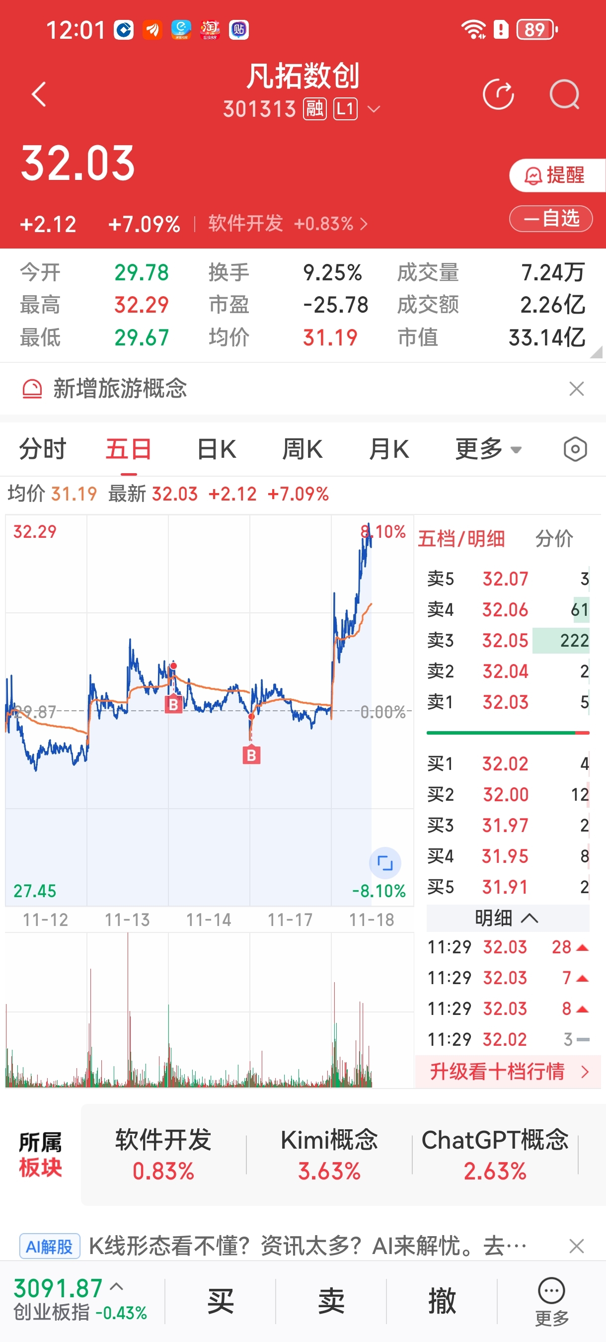 $凡拓数创(SZ301313)$ 仓位打了一半,今天有涨停预期的