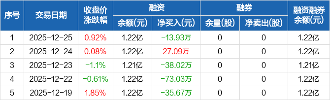 凡拓数创:融资净偿还13.93万元,融资余额1.22亿元(12-25)