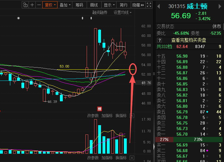 推演:明日若是回踩到53.0附近我计划入场!