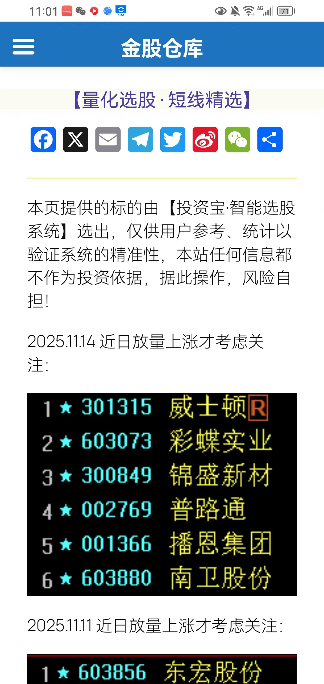 2025-11-14 金股仓库--6只股,若近日放量可考虑逢低跟进