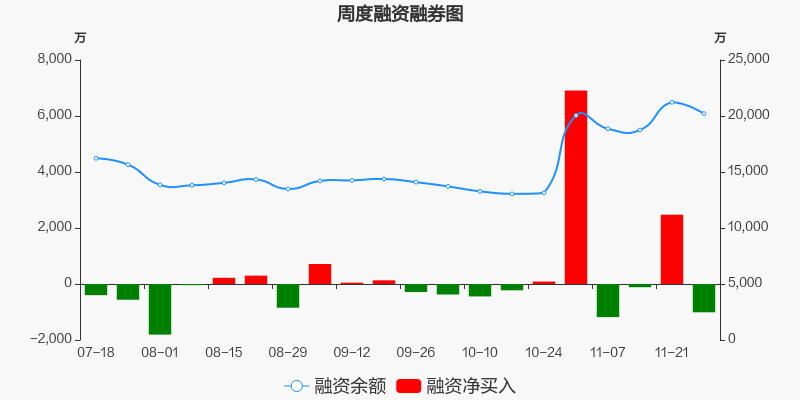 威士顿本周(2025/11/24-2025/11/28)累计涨幅达11.39%,截至11月28日最新股价报收61.21元。从增量上来看,11月24日至11月27日融资买入交易规模2.07亿元,融资偿还规模2.17亿元,期内融资净偿还1010.87万元。从存量上来看,截止11月30日,威士顿融资融券余额2.02亿元,其中融资余额规模2.02亿元,融券余额规模0元。