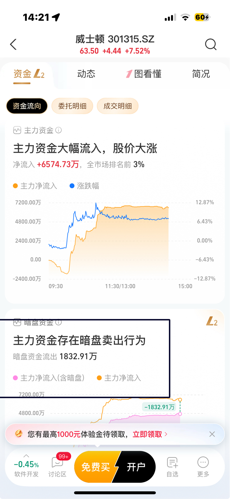 $威士顿(SZ301315)$ 没有进的今天就不要进了,明天估计的埋人。这货暗盘在出货,一直在均线上出货,明天比较危险。