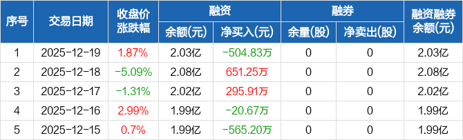 威士顿:融资净偿还504.83万元,融资余额2.03亿元(12-19)