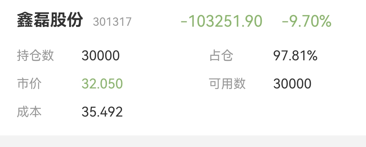 $鑫磊股份(SZ301317)$ 宝子们,我下周要不要满上?