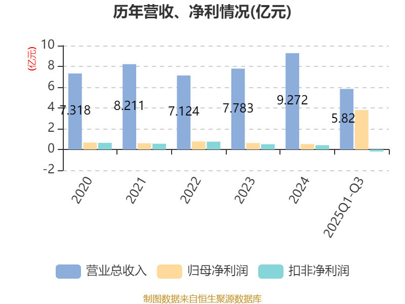 资产重大变化方面,截至2025年三季度末,公司货币资金较上年末减少37.22%,占公司总资产比重下降4.58个百分点;其他应收款(含利息和股利)较上年末增加889.43%,占公司总资产比重上升2.64个百分点;应收票据及应收账款较上年末减少10.82%,占公司总资产比重下降1.93个百分点;交易性金融资产合计较上年末增加134.51%,占公司总资产比重上升1.75个百分点。