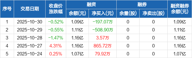 鑫磊股份:融资净偿还197.07万元,融资余额1.09亿元(10-30)