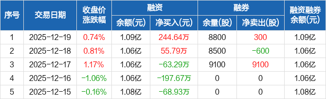鑫磊股份:融资净买入244.64万元,融资余额1.09亿元(12-19)