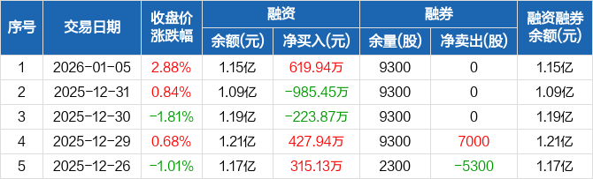 鑫磊股份:融资净买入619.94万元,融资余额1.15亿元(01-05)