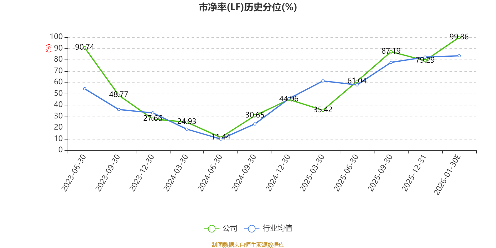 市盈率、市净率为负时,不显示当期分位数,会导致折线图中断。