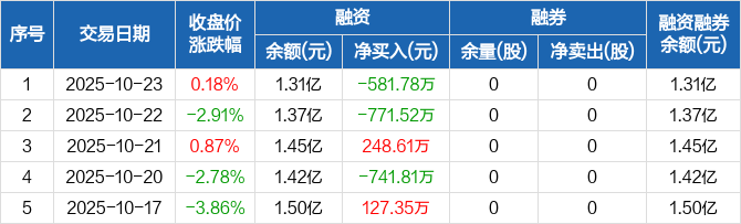 唯特偶:融资净偿还581.78万元,融资余额1.31亿元(10-23)