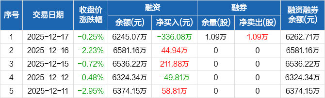 豪江智能:融资净偿还336.08万元,融资余额6245.07万元(12-17)