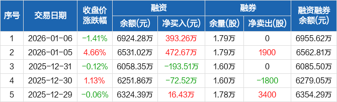 豪江智能:融资净买入393.26万元,融资余额6924.28万元(01-06)
