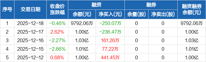 翰博高新:融资净偿还250.07万元,融资余额9792.06万元(12-18)