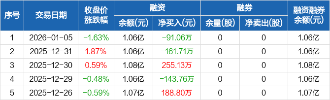 翰博高新:融资净偿还91.06万元,融资余额1.06亿元(01-05)