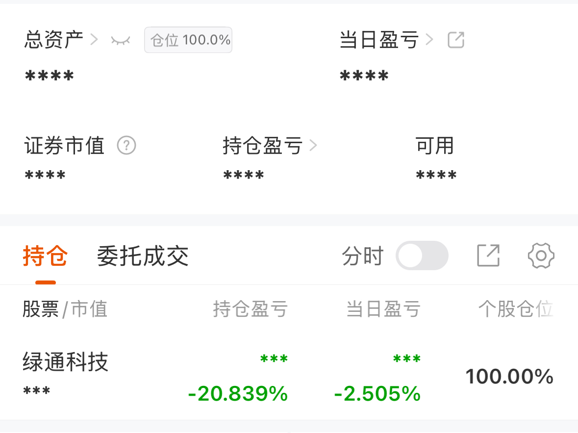 $绿通科技(SZ301322)$ 早盘涨2个点没有卖,尾盘跌2.5个点!如果我还持有,坚持每天打卡!见证回本之路!