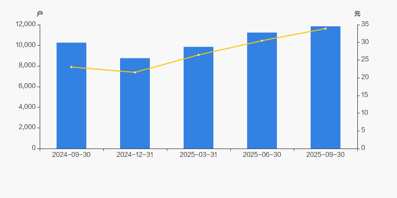 自2024年12月31日以来,公司股东户数连续3期上涨,截至目前增幅为35.30%。2024年12月31日至2025年9月30日区间股价上涨57.35%。