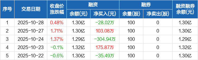 绿通科技:融资净偿还28.02万元,融资余额1.3亿元(10-28)
