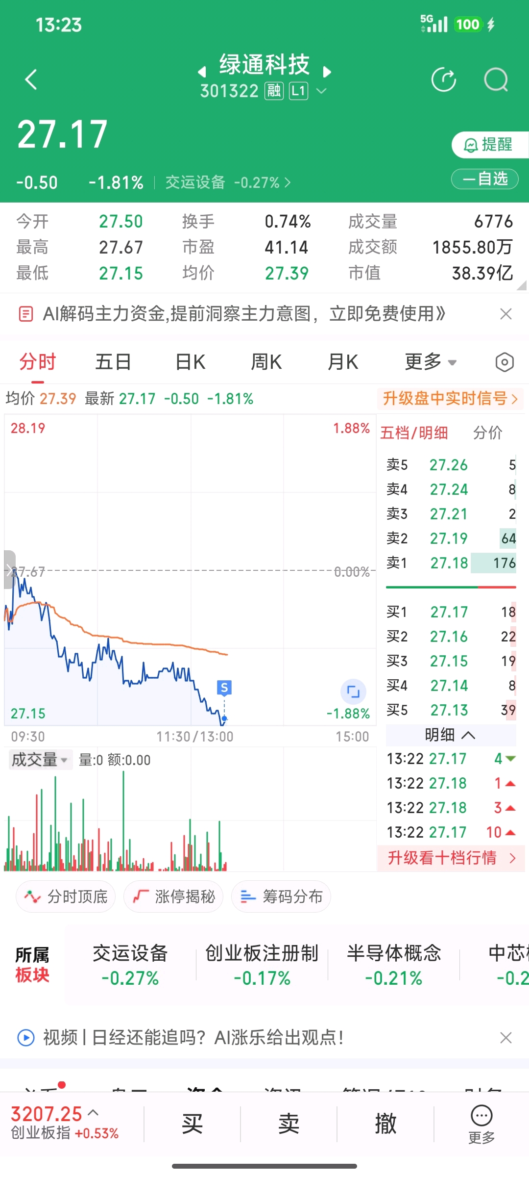$绿通科技(SZ301322)$ 天天跌,受不了了,跑完了