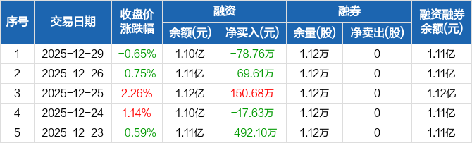 绿通科技:融资净偿还78.76万元,融资余额1.1亿元(12-29)