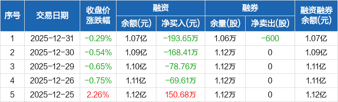 绿通科技:融资余额1.07亿元,创近一年新低(12-31)