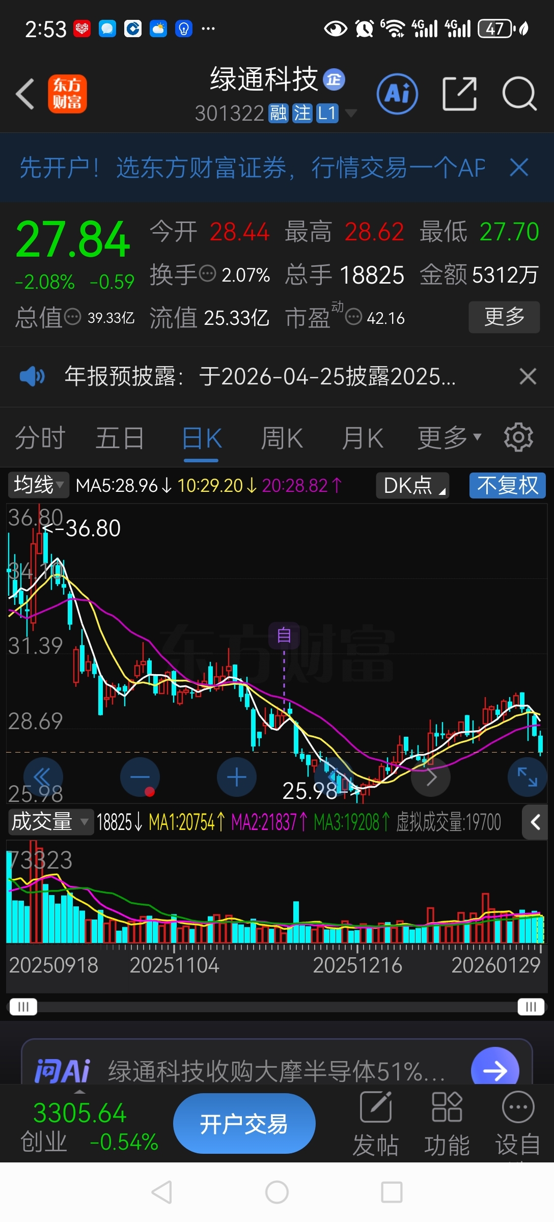 $绿通科技(SZ301322)$ 随着大盘涨了一个月的幅度有没有6个点,结果3天就跌没了,啥破公司还天逼