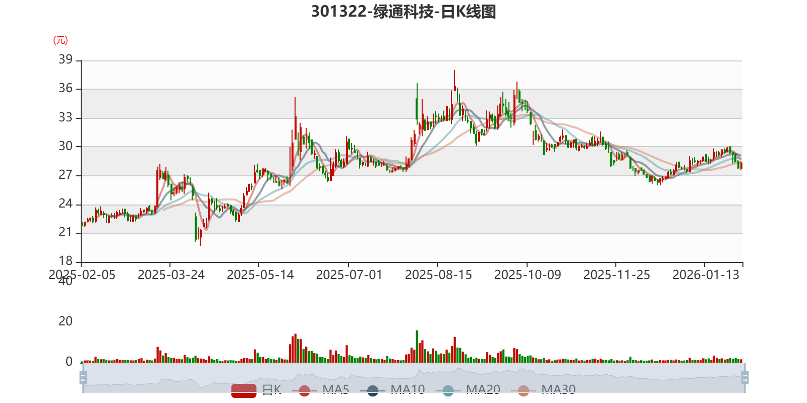 中证智能财讯绿通科技(301322)1月30日晚间披露2025年度业绩预告,预计2025年归母净利润4000万元至5000万元,同比下降64.82%-71.86%;扣非净利润预计200万元-300万元,同比下降97.16%-98.11%。以1月30日收盘价计算,绿通科技目前市盈率(TTM)约为80倍-100倍,市净率(LF)约1.41倍,市销率(TTM)约5.11倍。