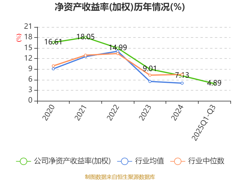 盈利能力方面, 2025年前三季度公司加权平均净资产收益率为4.89%,同比下降0.4个百分点。公司2025年前三季度投入资本回报率为4.23%,较上年同期下降0.02个百分点。