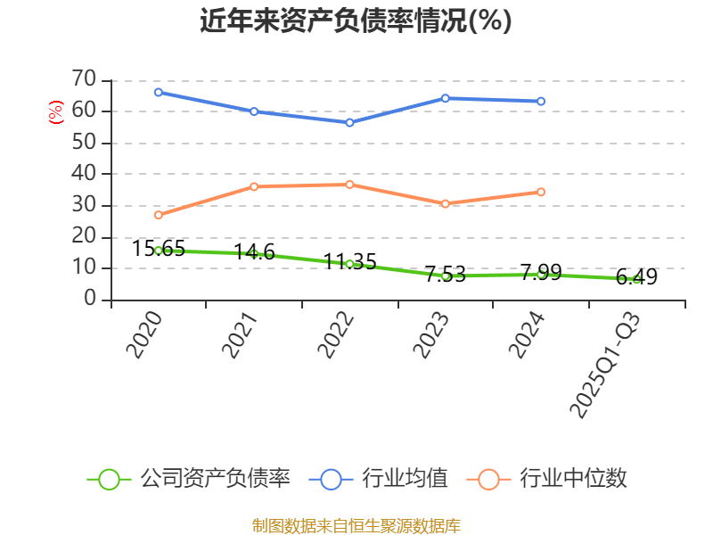 2025年前三季度,公司流动比率为11.46,速动比率为10.19。