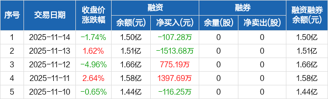 新莱福:融资净偿还107.28万元,融资余额1.5亿元(11-14)