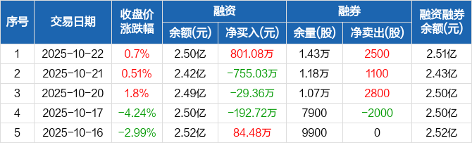 曼恩斯特:融资净买入801.08万元,融资余额2.5亿元(10-22)