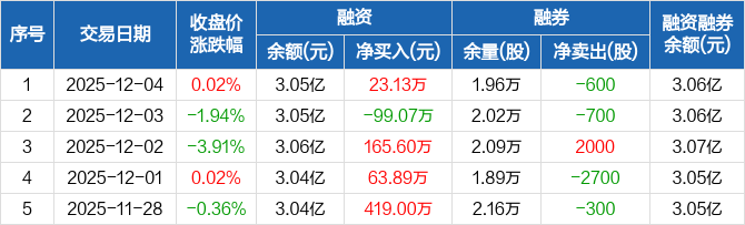 曼恩斯特:融资净买入23.13万元,融资余额3.05亿元(12-04)