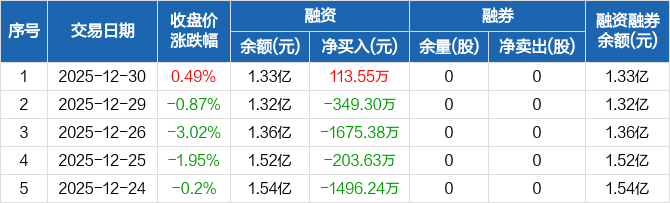 捷邦科技:融资净买入113.55万元,融资余额1.33亿元(12-30)