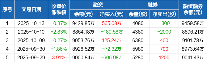 华宝新能:融资净买入565.68万元,融资余额9429.85万元(10-13)