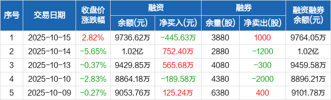 华宝新能:融资净偿还445.63万元,融资余额9736.62万元(10-15)