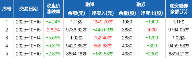 华宝新能:融资净买入1349.7万元,融资余额1.11亿元(10-16)