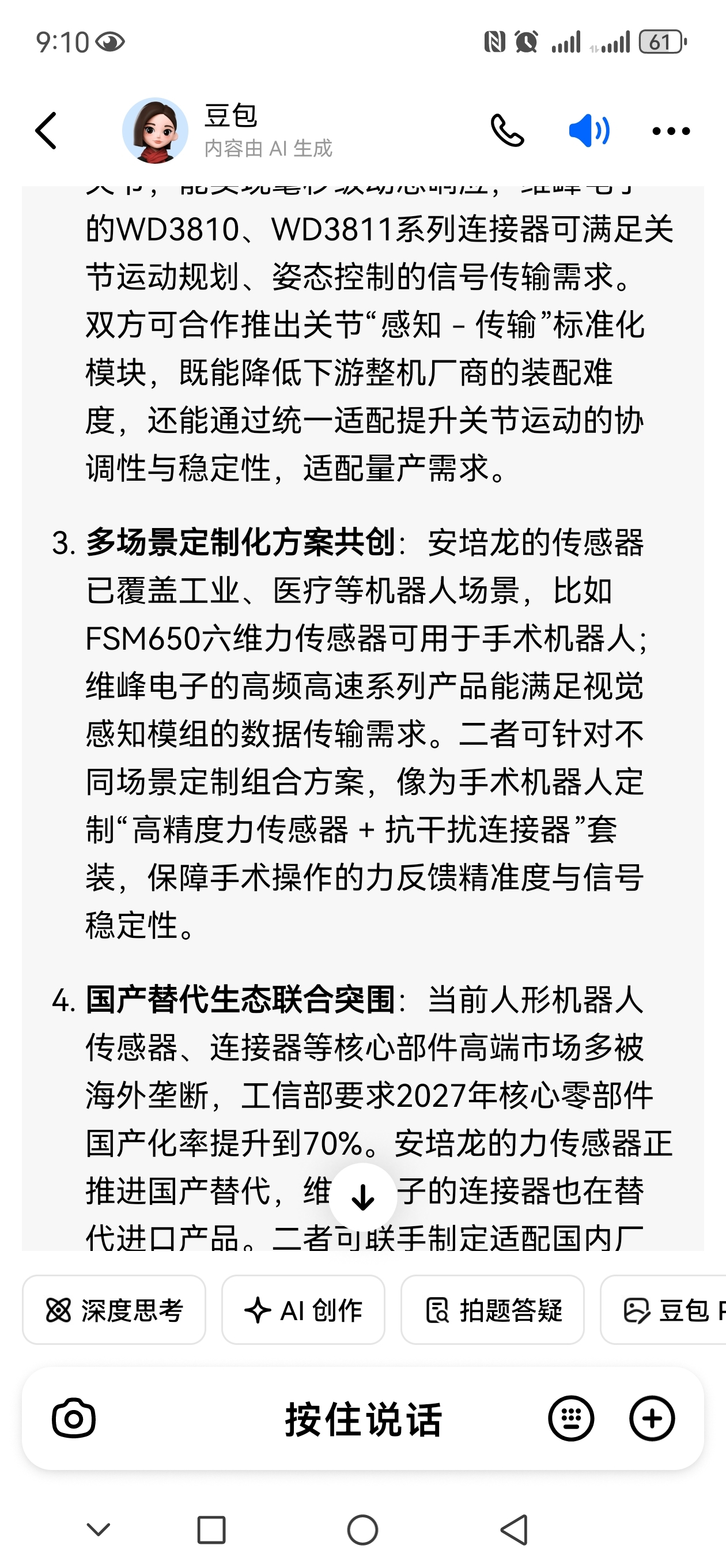 公司作为产微型高端高速精密连接器生产制造商,在国产生态共建突围中重要的一环,在机器人和人形机器人领域可以作为网络神经连接协调像安培龙,卧龙电驱,电子皮肤等等各个终端场景。公司本身就与宇树优必选合作,国产机器人想象力无限扩大