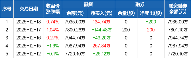 维峰电子:融资净买入134.74万元,融资余额7935万元(12-18)