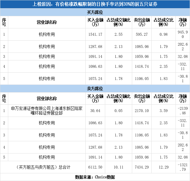龙虎榜数据显示,今日共9个机构席位出现在龙虎榜单上,分别位列买一、买二、买三、买四、买五、卖二、卖三、卖四、卖五,合计净买入817.68万元,占该股今日总成交额的1.35%。除此之外还有永辉超市、德科立、雷科防务等35只个股榜单上出现了机构的身影,其中16家呈现机构净买入,获净买入最多的是德科立,净买额为2.60亿元;19家呈现机构净卖出,其中遭净卖出最高的为永辉超市,净卖额为3.42亿元。