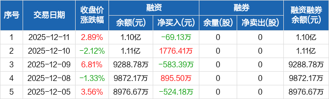 信音电子:融资净偿还69.13万元,融资余额1.1亿元(12-11)
